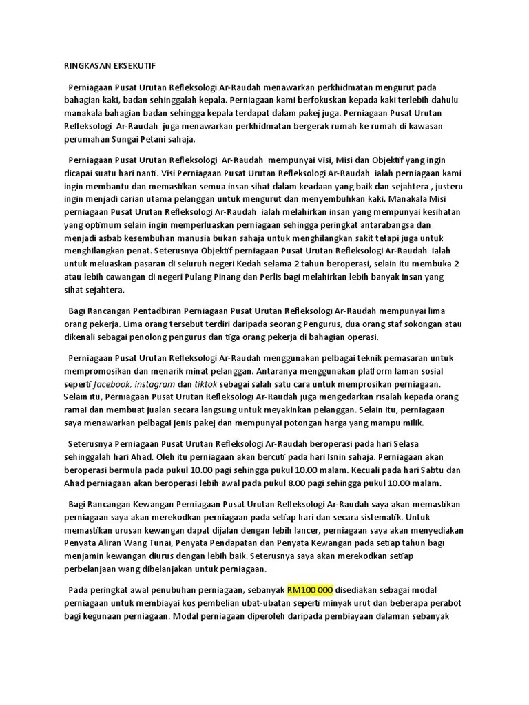 Contoh Kerja Kursus Perniagaan Spm 2021 Urutan Refleksologi - Ringkasan Eksekutif Pdf